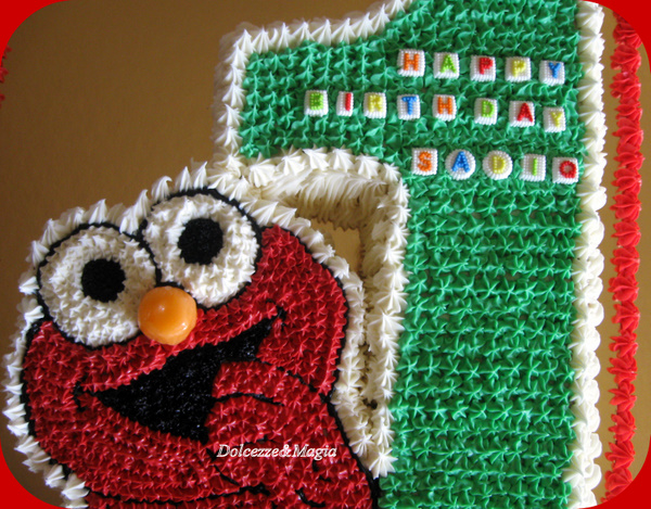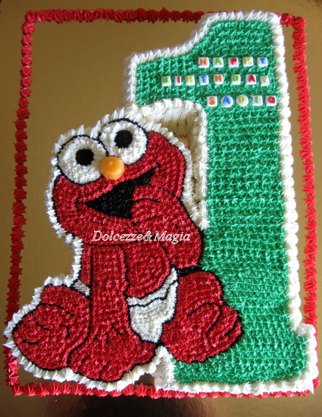La sua mamma desiderava una torta con Baby Elmo, uno dei personaggi dei Muppet baby. Io li vedevo quand’ero piccola, ma è da un sacco che qui in Italia non vengono più trasmessi in tv.