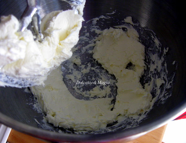 Procediamo con il ripieno al Cream Cheese. Mettete la philadelphia nella planetaria (lo sbattitore classico va benissimo) e iniziate a impastarla finchè non sarà cremosa e priva di grumi.