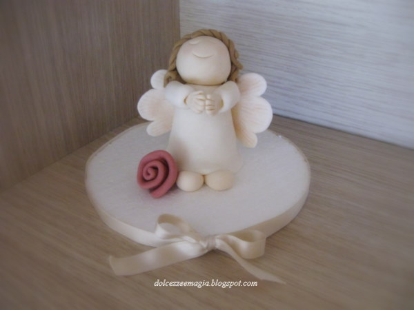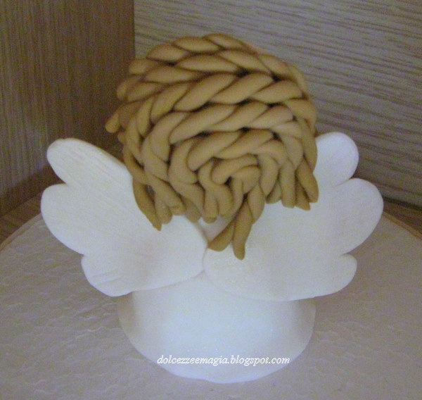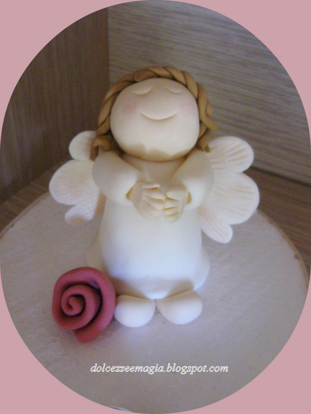 La prima volta che ho fatto un angelo è stato il dicembre scorso per il compleanno di mia madre con la torta angelo per l’appunto! Quando lo mostrai alla mia amica per farle vedere a cosa mi stavo appassionando, lei subito mi disse che sarebbe stato perfetto per torta del battesimo della sua bimba che allora era ancora nella pancia!
