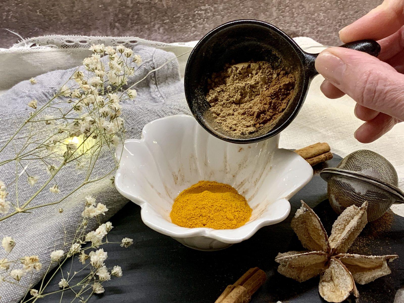 Questa bevanda di origini indiana, prende il suo caratteristico colore dorato dalla spezia principale di cui è composta, la curcuma, usata nella tradizione medica Ayurvedica da ben sei mila anni per i suoi molteplici effetti benefici.