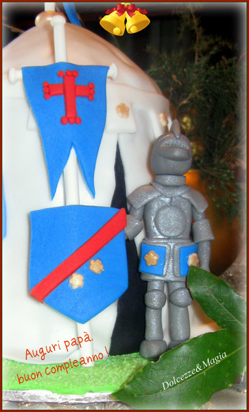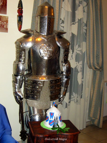 C’era una volta tanto, tanto tempo fà, una figlia che amava tanto il suo papà e che un giorno gli chiese: “papà che torta vorresti per il tuo compleanno?” e il padre le rispose: “fammi un cavaliere medioevale, con l’armatura e lo scudo”. La figliola sorrise dentro il suo cuore, sapendo che, non solo aveva indovinato il soggetto che il padre avrebbe scelto, ma che il cavaliere giaceva già immobile e valoroso nella vetrinetta del suo salotto, al sicuro dai pericoli e dagli sguardi indiscreti dei curiosi!!