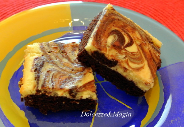 Questi pasticcini, chiamiamoli pure così, sono davvero molto semplici da preparare e nascono dall’ abbinamento di due strati di dolci diversi: il brownie e la cheese cake.