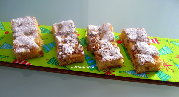 E’ un dolce morbido. Una volta fuori dal forno lasciatelo raffreddare un pò e poi tagliatelo a fettine. Con queste quantità d’ingredienti dovreste ricavarne circa 30 fette. Cospargetele con lo zucchero a velo rimasto e … pappatevele!!!!!