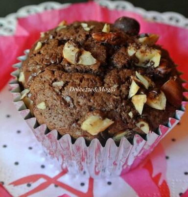 Preriscaldate il forno a 180° e preparatevi la teglia dei cupcakes con i pirottini. In una pentola mettete il burro, lo zucchero di canna e il miele e fate sciogliere tutto a fuoco basso, mescolando affinchè gl’ingredienti non si attacchino sul fondo. Dopo di che versate l’impasto in una ciotola capiente e unite la farina setacciata e il bicarbonato con una frusta elettrica e poi aggiungete anche le uova, uno per volta. Infine, a mano con una spatola, aggiungete le noci e il latte.