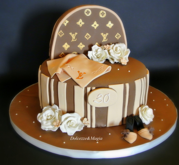 Circa un mese fa ricevo una mail da una ragazza che mi chiede se le posso fare la torta per i suoi trent’ anni. Nella data in cui faceva il compleanno io ero già impegnata con un altro lavoro, ma lei mi disse che molto probabilmente avrebbe spostato la festa (per sua comodità) in un altro giorno. Inizia così una lunga corrispondenza in cui lei mi spiega cosa vuole. In vero niente che non mi aspettassi, generalmente scarpe e borse vanno per la maggiore in questi casi e così è stato anche questa volta, infatti mi dice che vuole una borsa Vuitton!
