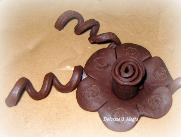 Per quanto riguarda la decorazione, ne ho scelta una molto semplice. Avevo visto questo fiore nel sito della Wilton e volevo provare a farlo con il cioccolato plastico, non è venuto tanto male, qui potete trovare la spiegazione per poterlo realizzare.