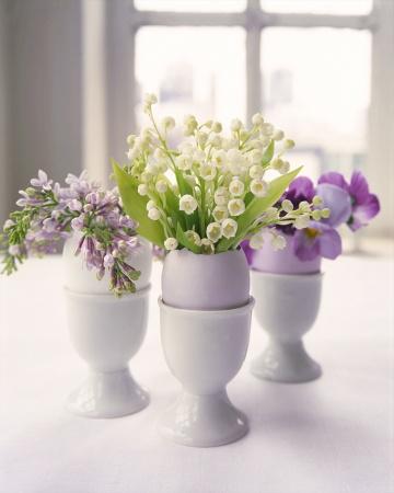 La prima delicatissima idea è per il centro tavola, realizzato con gusci di uova e fiori freschi, idea della famosa Martha Steward, il suo sito è sempre ricco di eleganza e fantasia: