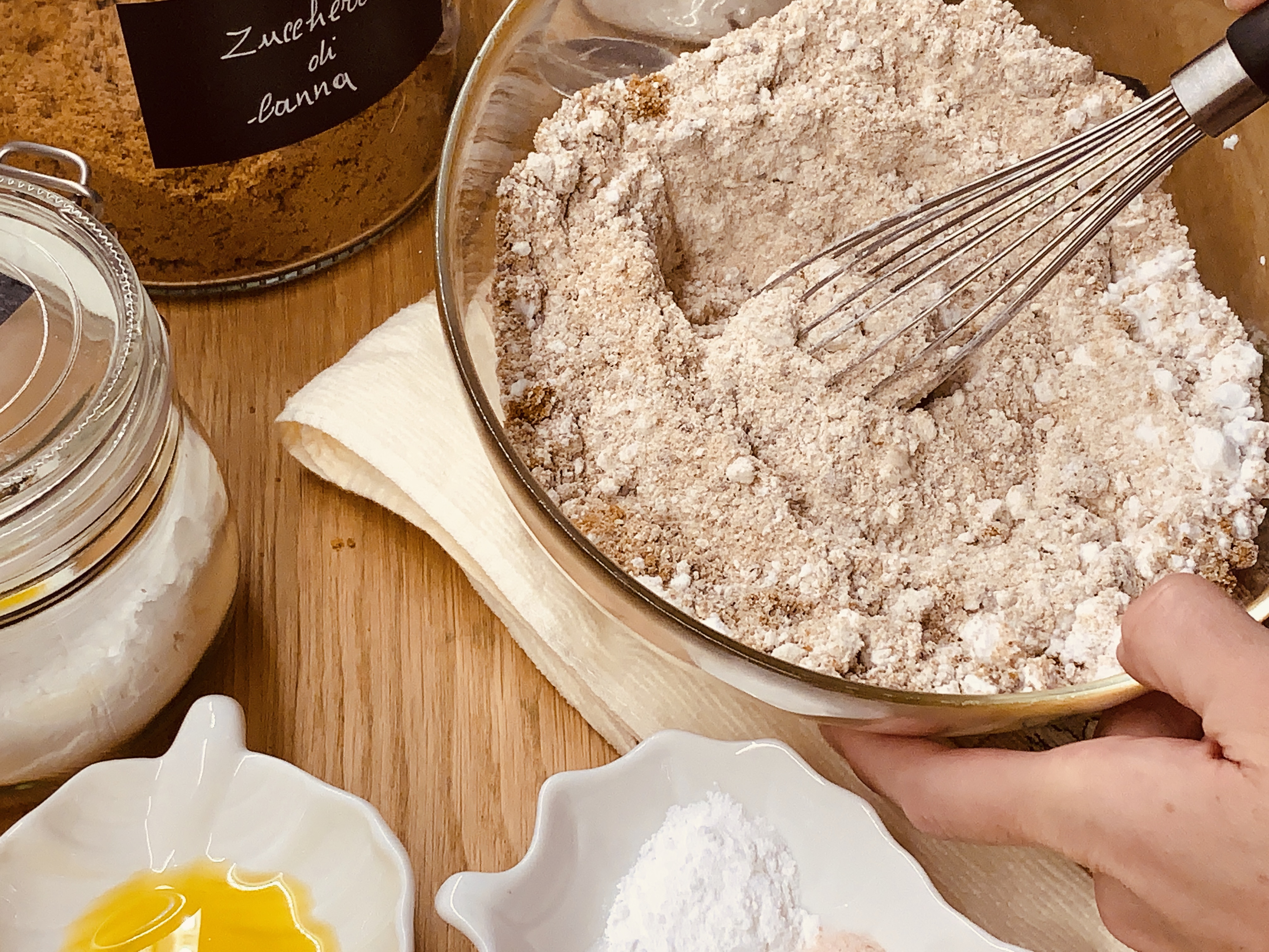 Anche la farina ha un grosso peso nella selezione degl’ ingredienti. In preparazioni come queste, dolci di ogni giorno che vanno a sostituire le merende del supermercato, uso sempre farine poco raffinate come la farina integrale biologica di grani prodotti nel nostro paese, o magari altri tipi di farine come quella di farro.