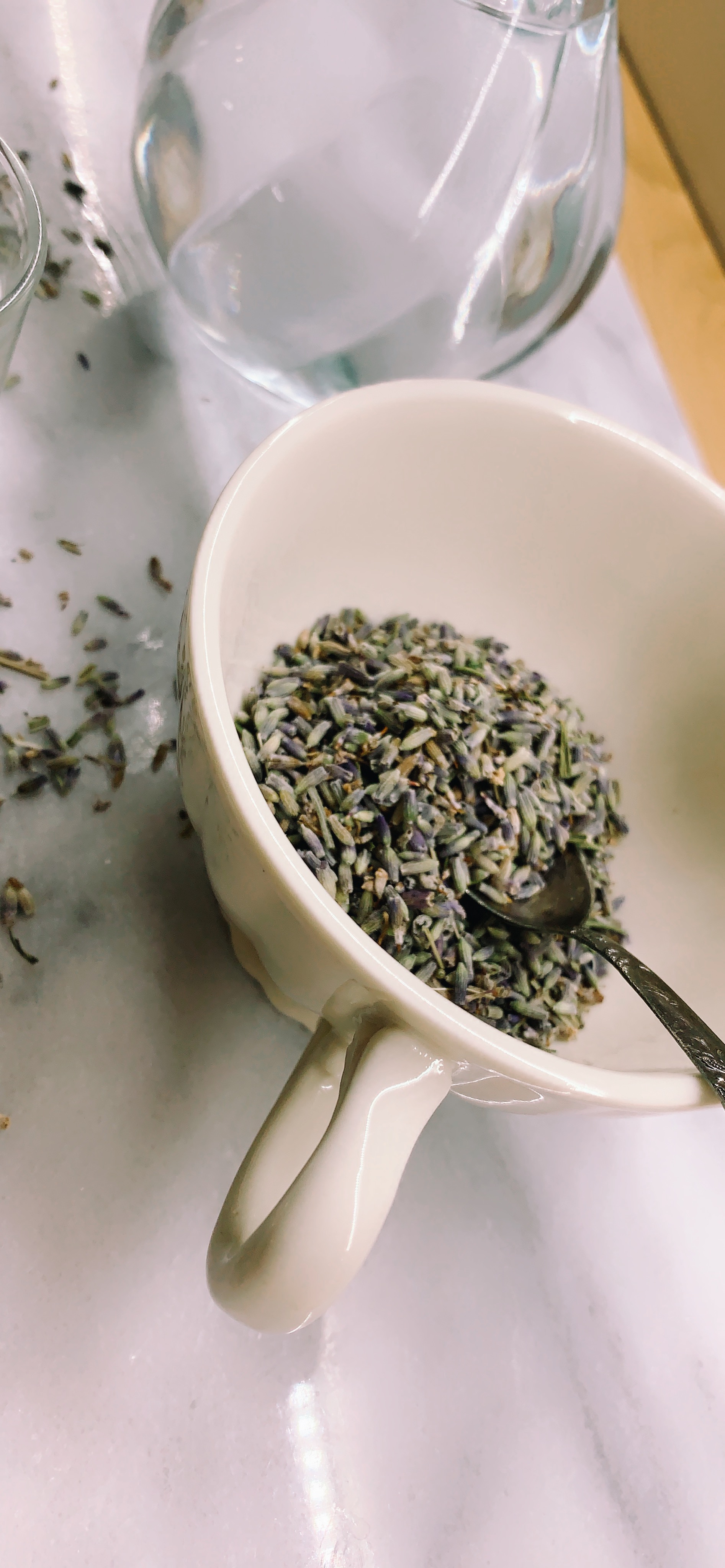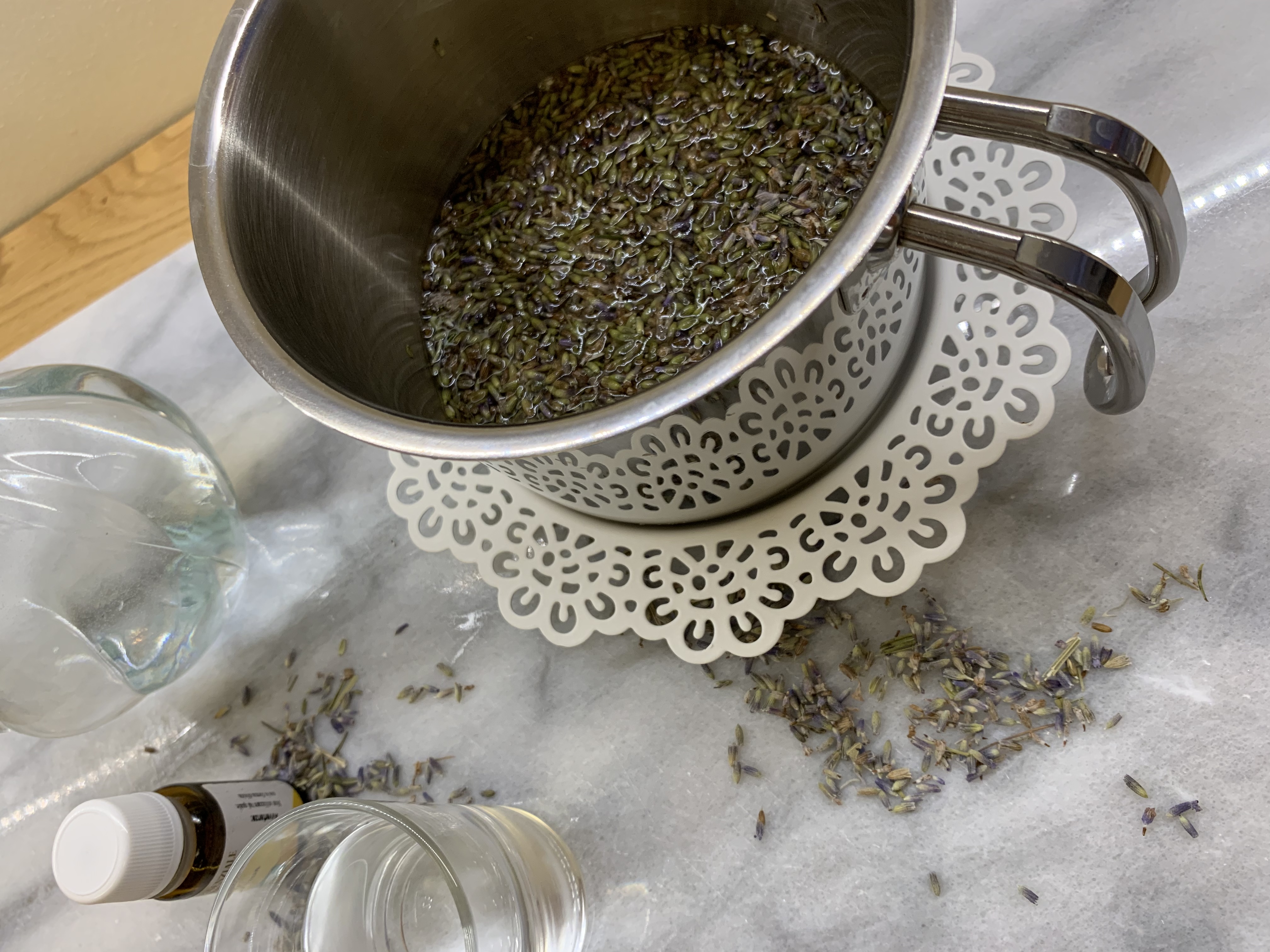 Portiamo a bollore una parte dell’acqua e aggiungiamo i fiori di lavanda.