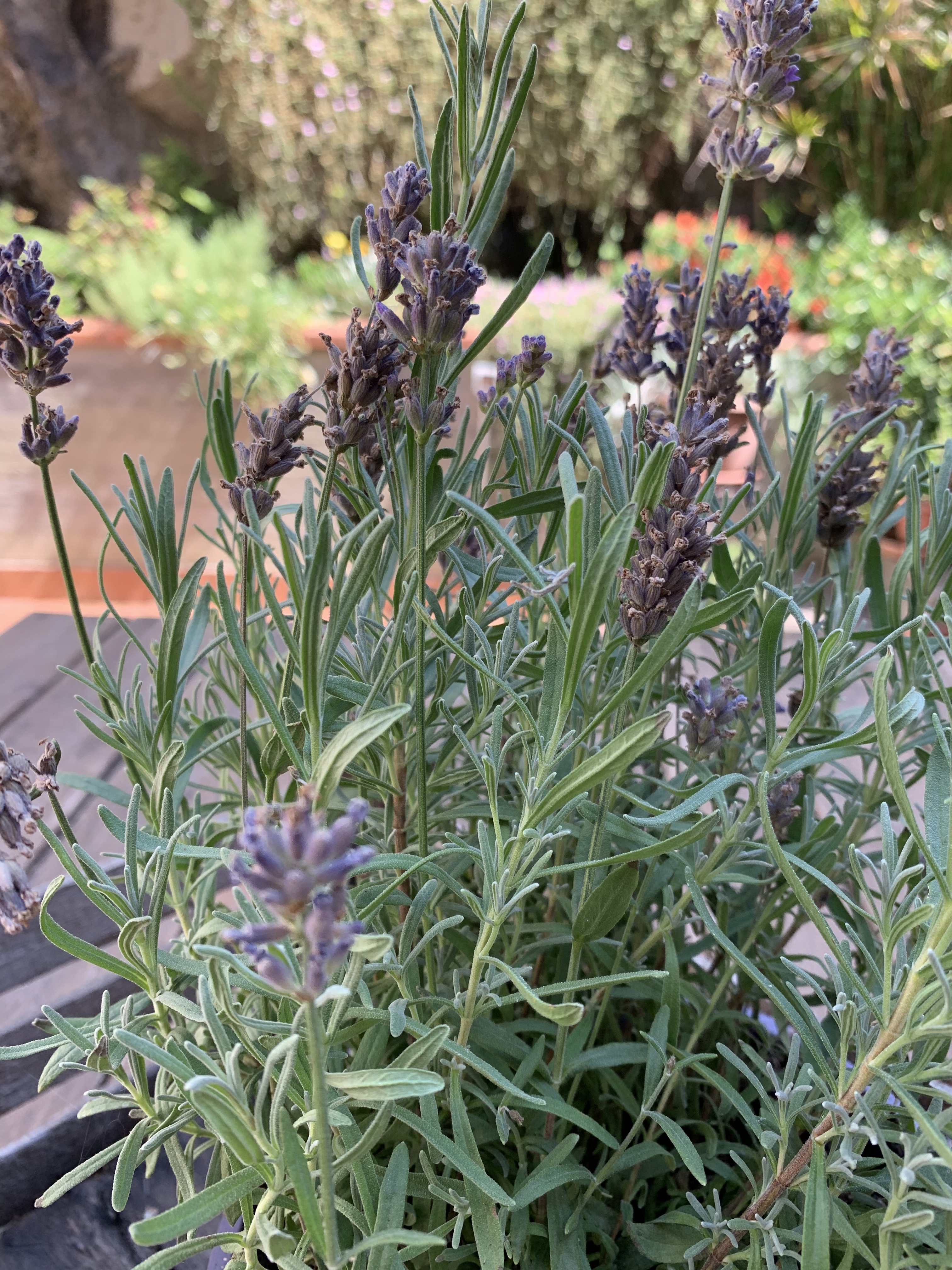 Dentro è fresco e tutto profuma di pulito, di aria, di fiori. Una siepe di gelsomino odoroso, un rosaio bianco e rosa, un cespuglio di lavanda, rosmarino, vasi di gerani colorati.