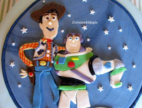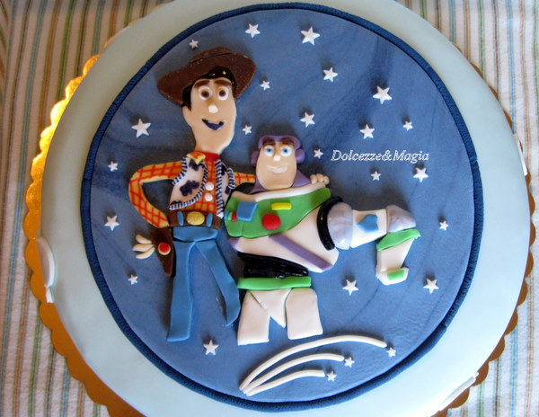 Questa torta me l’ha richiesta una cara amica per il compleanno del suo bimbo che, ovviamente è amante del cartone. Già, mentre casa mia è piena di treni della serie Thomas the tank, casa sua è piena di Buzz e Woddy e del resto dei personaggi di questo bellissimo film, anche se adesso Cars 2 imperversa di brutto!